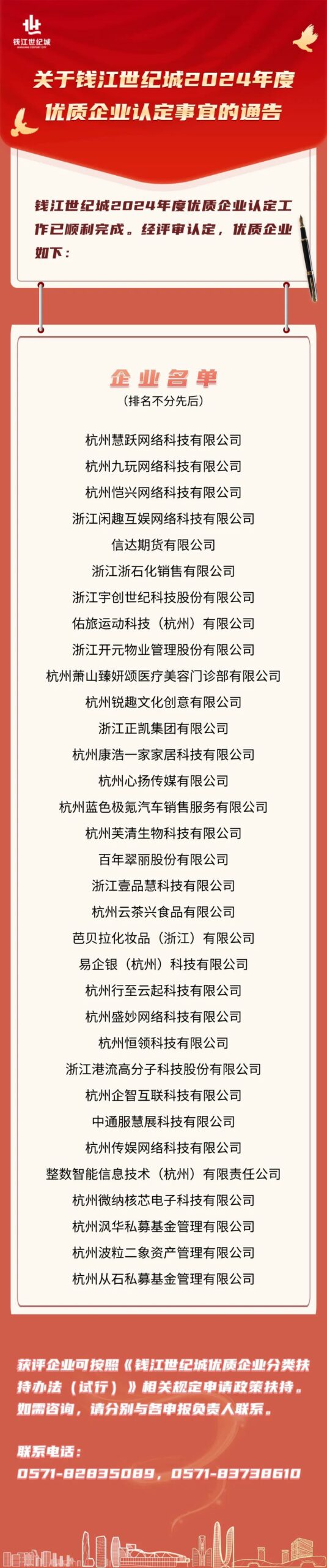 杭州青青草黄色软件科技有限公司憑借卓越的創新實力與穩健的發展表現,經嚴格評審,成功入選錢江世紀城 2024 年度優質企業 。